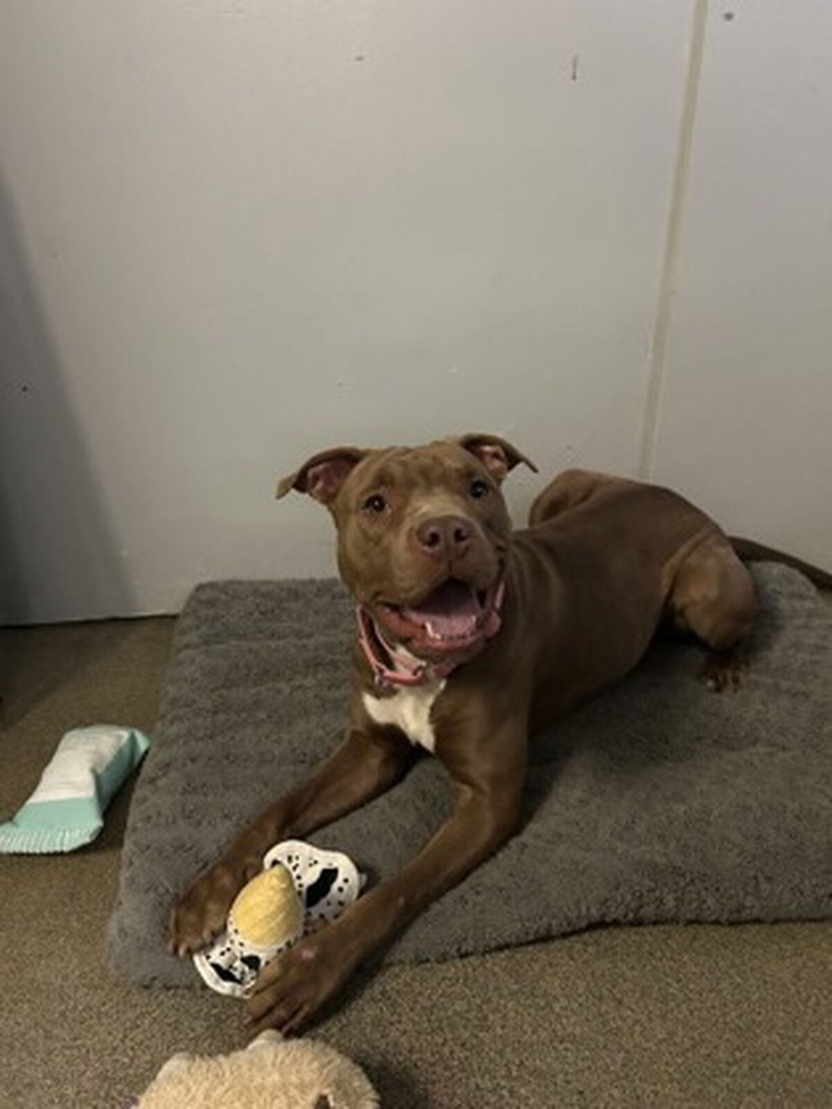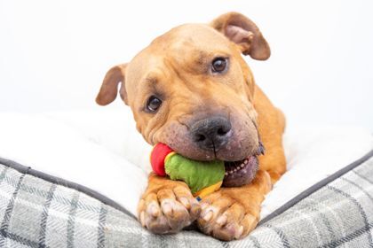 Norma is looking for a second chance in a forever home. This medium size beauty likes treats and toys. She will self-play and also excitable bring over a toy to us. In fact, she will gladly exchange a toy for a tasty treat. Please come meet Norma today.