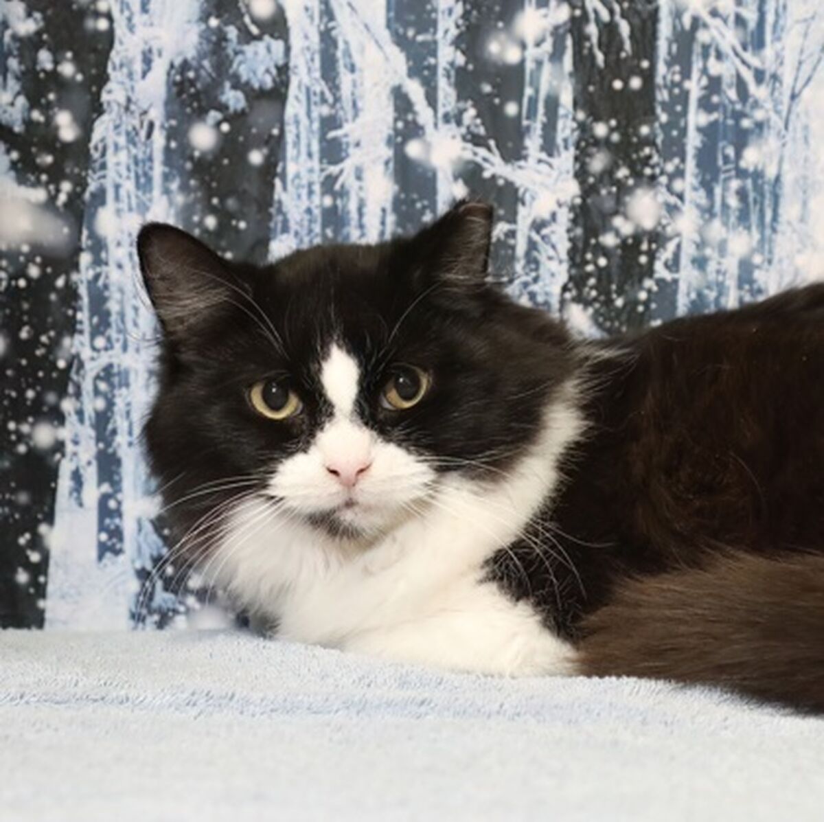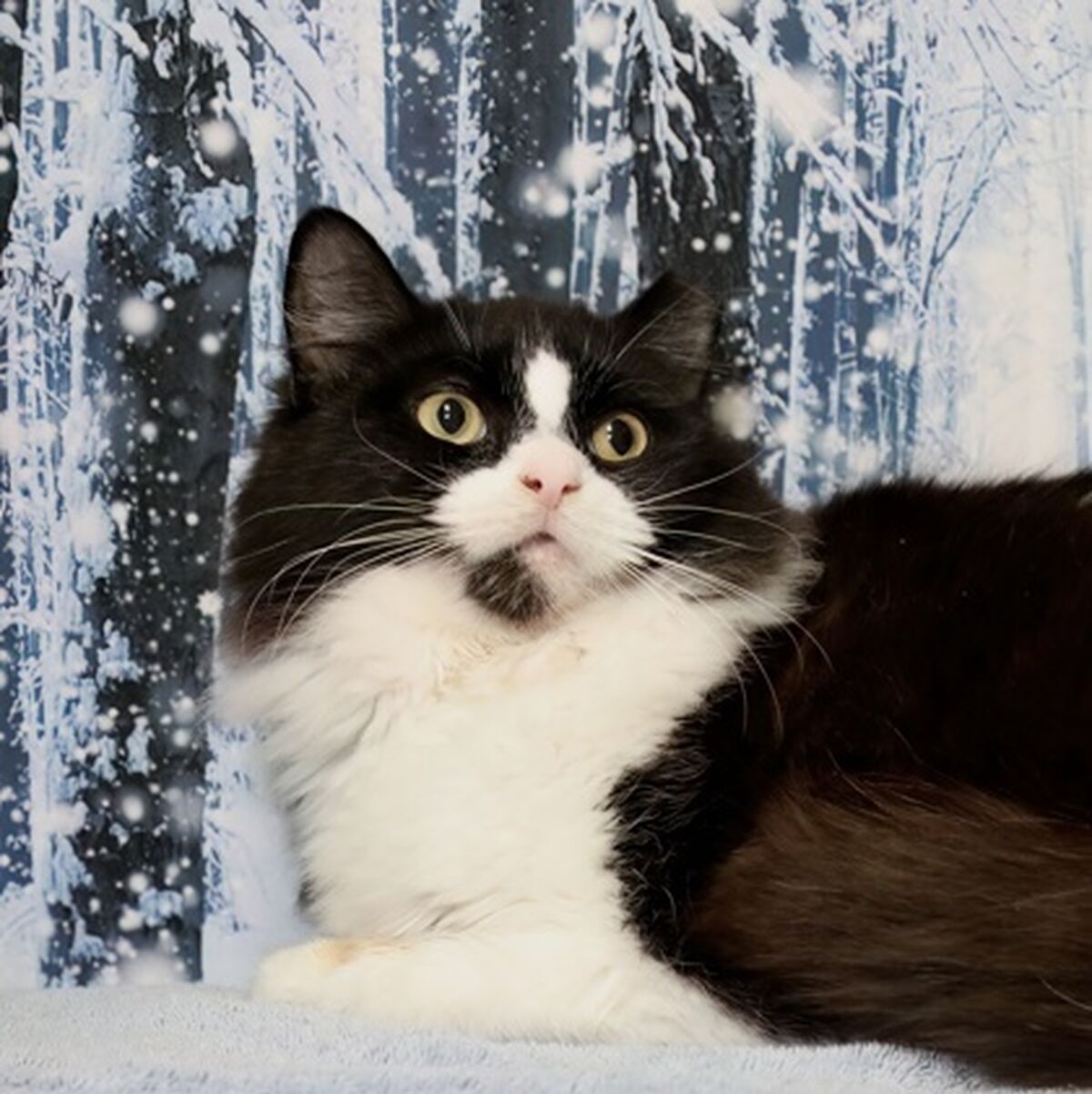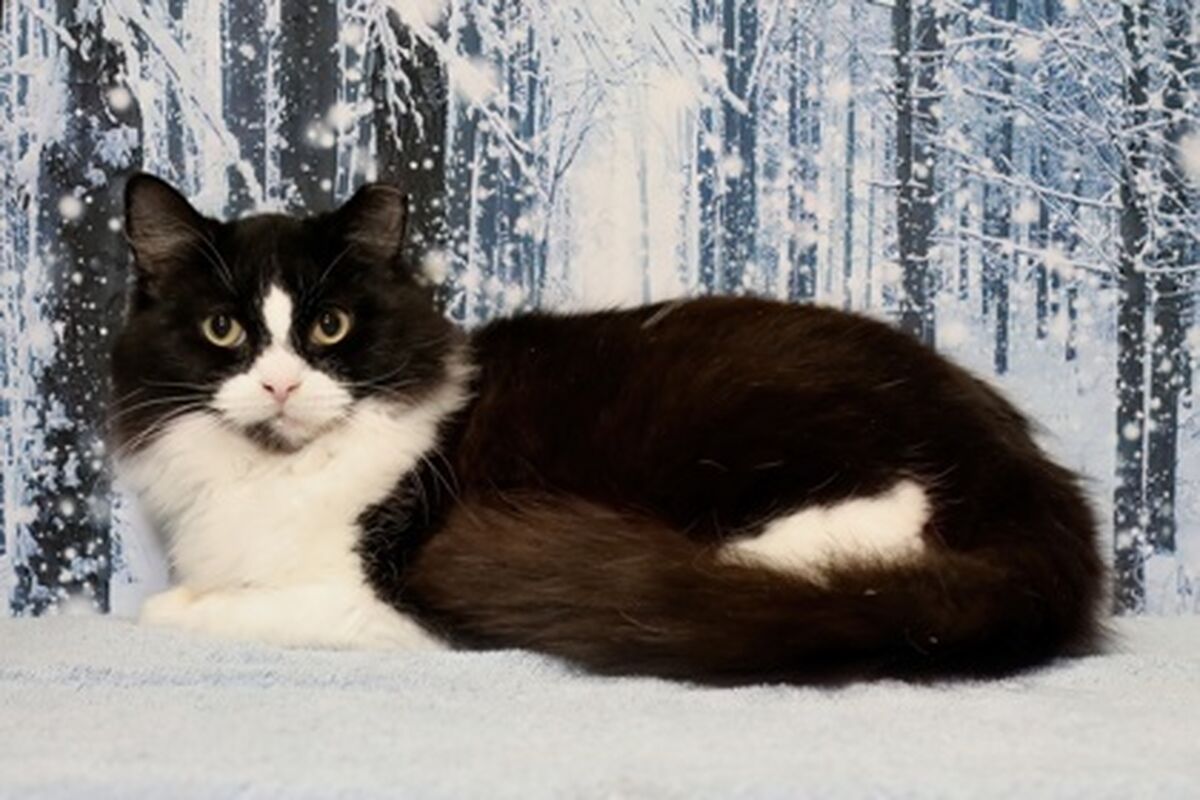Sycamore is a lovely black and white medium-hair fellow. He is bonded with his bff Fir. Sycamore is the braver of the two, and Fir depends on Sycamore for comfort and security. They are a loving duo and would surely enrich any forever home. As a bonded pair, Sycamore and Fir must be adopted together. Do you have room in your heart for these two beautiful kitties? Please come meet them just as soon as possible.