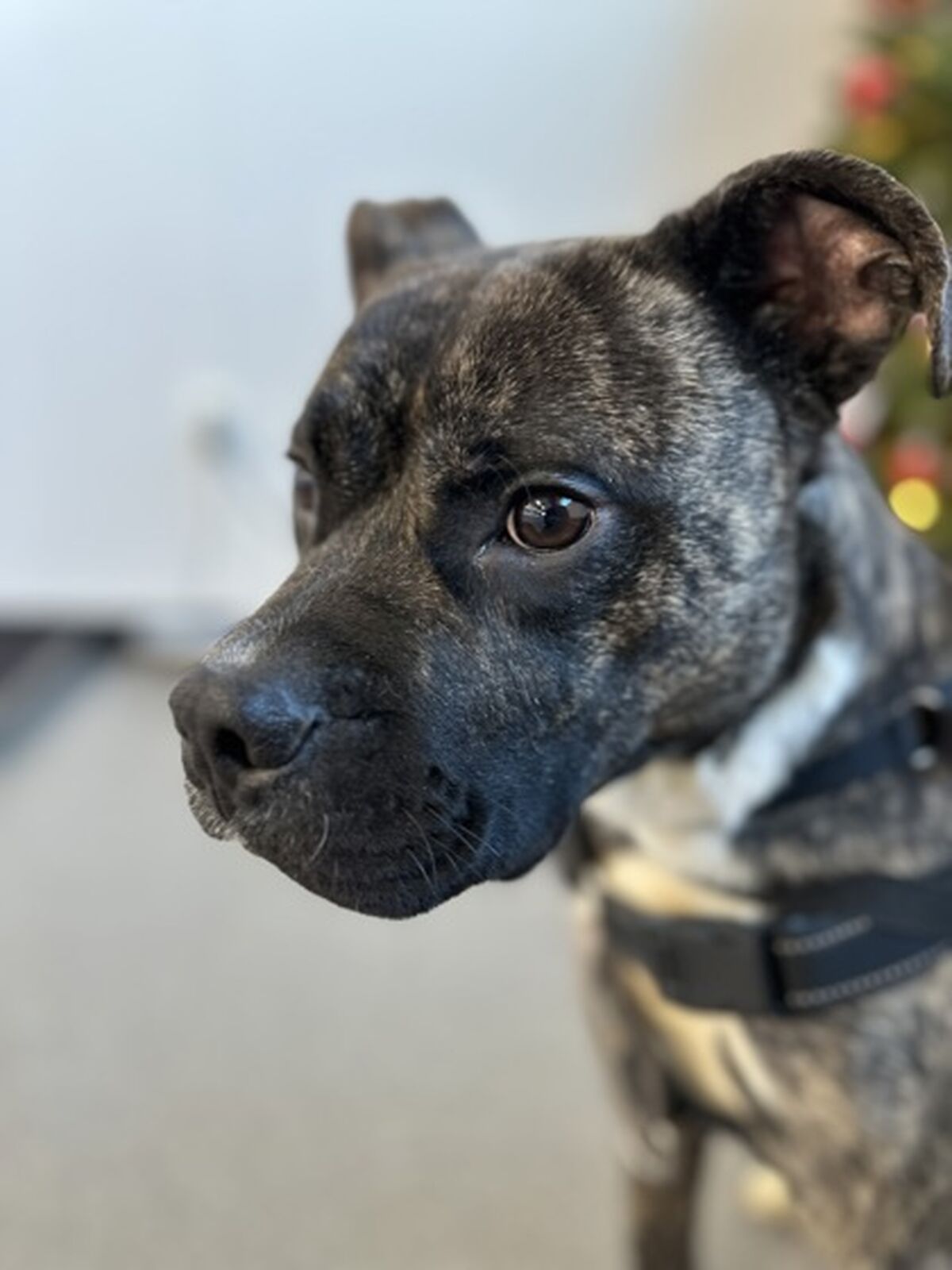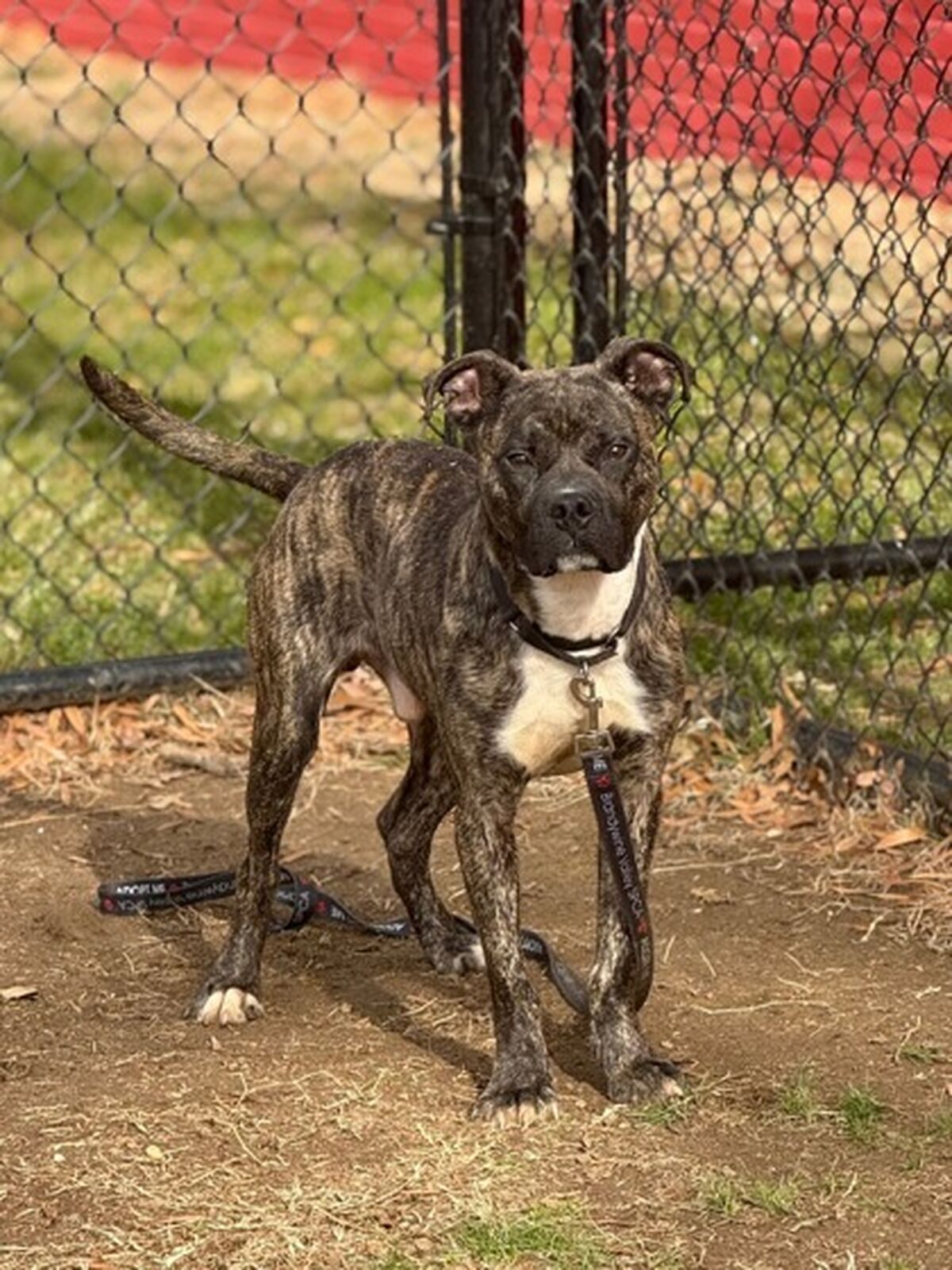 Meet Titche, a sweet, lovable dog with a truly gorgeous brindle coat that makes him stand out. This handsome boy is an absolute ball of energy, always ready for fun and excitement! Titche loves to engage in playful sessions with toys and happily enjoys meeting other dogs. Taking him out for walks is a pleasure, as he already boasts excellent leash manners, making him a wonderful companion for neighborhood strolls. Plus, he is very treat motivated, which is a big bonus for continued training, and he already knows "sit". Titche is eager to find an active home that can match his playful spirit and appreciate his loving nature.