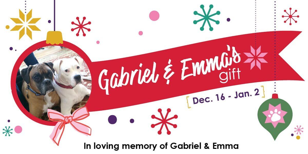 Big dogs, big love, NO fees - Gabriel & Emma's Gift is here! Thanks to the incredible generosity of a donor, the holiday season is looking extra bright for the adorable adoptable dogs in our care. Adoption fees for ALL large adult dogs (1yr+ & 40lbs+) are sponsored in memory of the donor’s beloved pets through January 2.