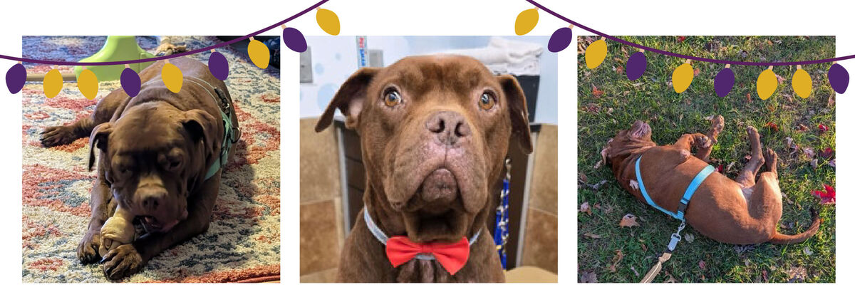 Stop by one of our campuses to make a deserving dog's holiday dreams of a new home come true - just like Mr. Brown, who came to us originally as a stray. He quickly became a staff and volunteer favorite. A huge lover of pets and scratches, who and never fails to have a wagging tail and a big smile, Mr. Brown finally met his forever family at our Mega Adoption® Event. Now, he and his family are enjoying their first holiday season together.