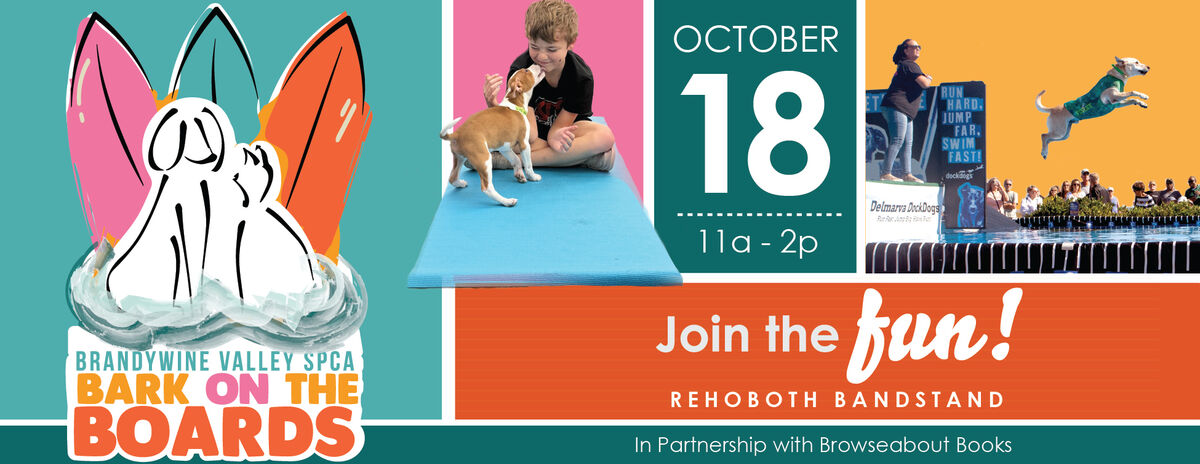 There is less than one month until Bark on the Boards returns to the Rehoboth Beach Bandstand. Join us Saturday, October 18 for a full day of fun for the whole family! Expect live entertainment, DockDog diving competition, local vendors, adoptable animals, pet costume contests, games, our famous yoga with puppies, and NEW this year, a 1K walk!
